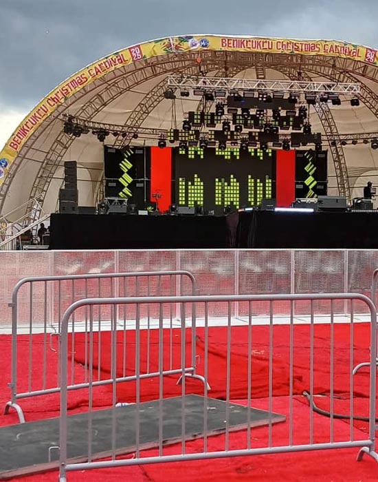 Our stages can be used for musical, political, religious and fashion show events and lots more. We offer dance floor; crowd control barriers and speaker lift trusses for rental.